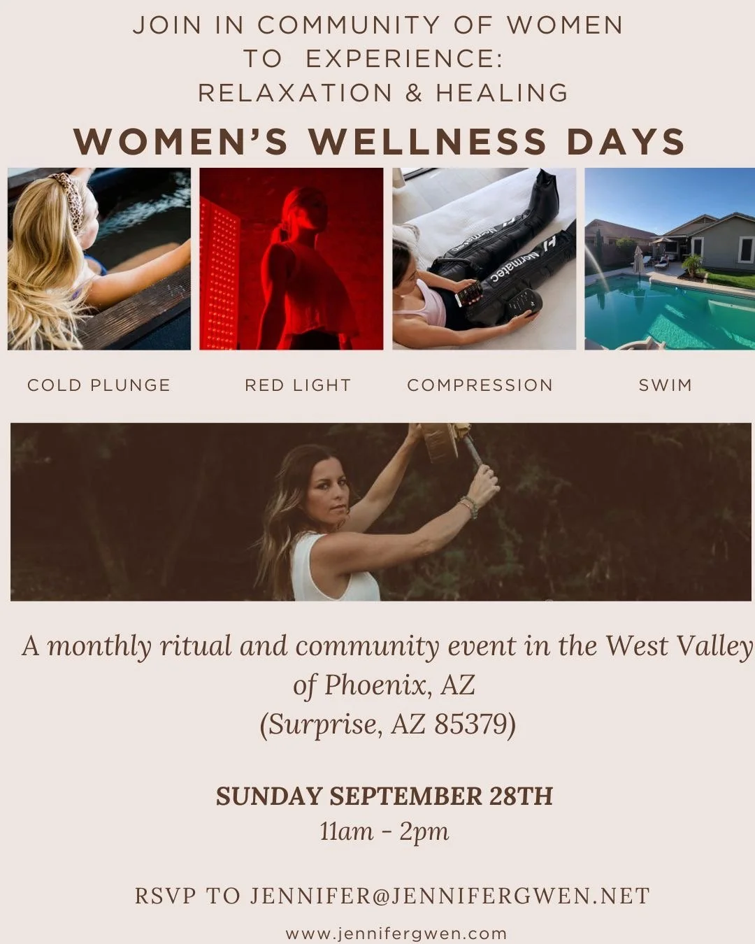 There will also be other healing modalities including steam sauna, red light therapy, compression, swimming pool hang in community with like-minded women. Space is Limited.